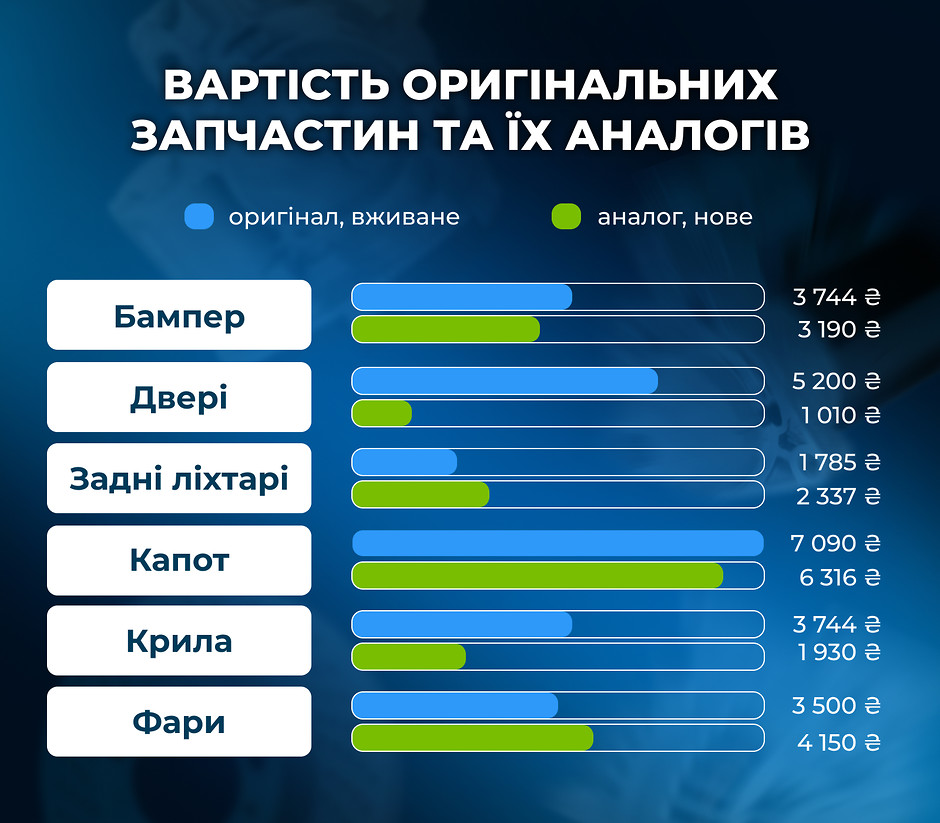 Запчастини RIA порівняли вартість на різноманітні оригінальні деталі та їхні аналоги.